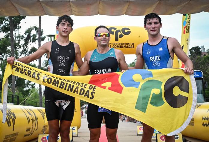 FRANZINI hizo una gran carrera, con una muy buena natación, y pese a no bajarse en los primeros lugares de la bici, logró imponer un gran ritmo en los 5k y aventajar al paceño Federico RUIZ, mientras que el juvenil Agustín WENDLER KOSSMANN terminó tercero.