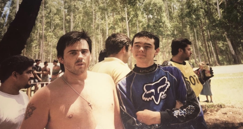 «A los dieciséis deje, me dedique a salir, ir a los cumpleaños, y todo eso… Después arranque con las motos, a correr enduro. Anduve en moto muchos años, fue una gran pasión. Vivía a tres cuadras del taller de «La Garza» Pelandino. Que era una leyenda. Y ese olor a nafta y moto era muy atractivo y un imán para mí. Y yo también metía manos en la parte mecánica. Fui campeón, pero tuve unos cuantas «aterrizadas» que me dejaron doblado».